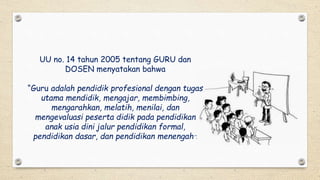 Menurut Kamus Dewan 1970 guru bererti pendidik pengajar dan pengasuh. View 10_KONSEP_MENGAJAR_SBG_SATU_PROFESIONpptx from BM MB at Institut Pendidikan Guru Malaysia Kampus Tun Hussein Onn. - Merupakan perkhidmatan yang unik.